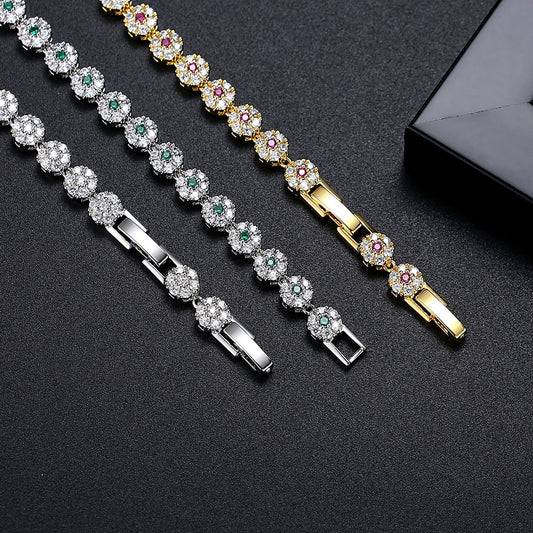 Delicada pulsera de cadena de tenis floral con micropavé de circonitas Kemstone: elegante diseño de doble cierre, hecha a mano para un look glamuroso diario B24090302