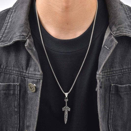 Kemstone Stainless Steel Celtic Sword Pendant Necklace for Men PN-2315