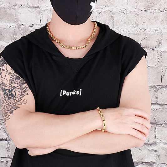 Kemstone Heavy Rope Twist Stainless Steel Chain – Bold Hip-Hop Men’s Necklace & Bracelet KS138928-Z