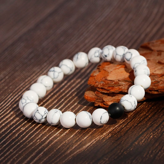 Pulseras de pareja Kemstone hechas a mano con cuentas de ágata negra mate y turquesa - Diseño ajustable para uso diario KB109644