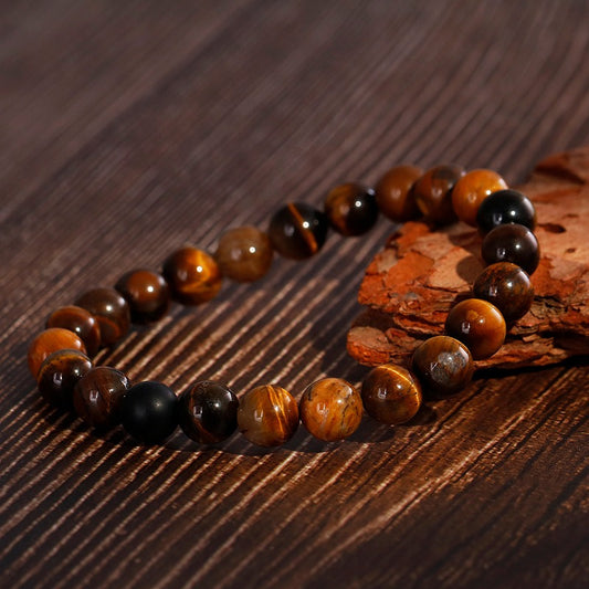 Pulsera de cuentas de ágata negra mate y ojo de tigre dorado de Kemstone: joyería artesanal de estilo bohemio para uso diario KB109615