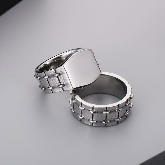 Anillo punk de acero inoxidable Kemstone para hombre - Diseño de motocicleta grabado a láser, pieza llamativa personalizable y resistente a la decoloración KR1087872-K