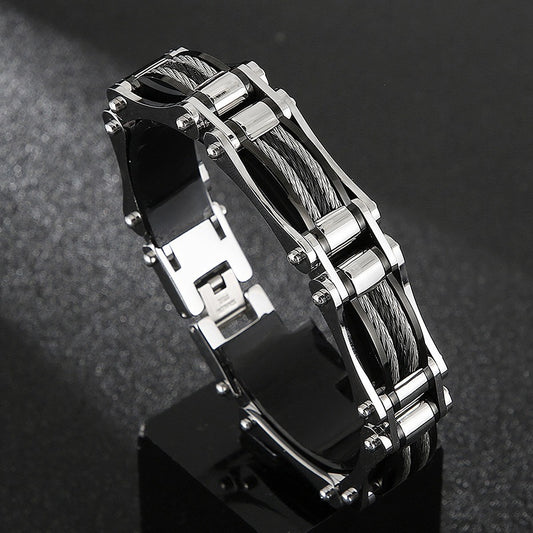 Pulsera Kemstone de cuerda de acero y titanio para hombre. Diseño inspirado en el ciclismo urbano. Brazalete ajustable para un estilo casual y al aire libre. KB139387-KFC