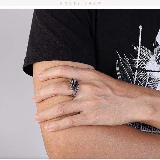 Anillo Kemstone de acero inoxidable con cabeza de dragón - Anillo ajustable de extremo abierto para hombre, joyería étnica retro para uso diario KR53285-K