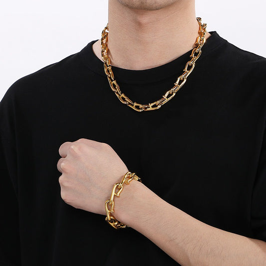 Pulsera de cadena de cable de acero inoxidable Kemstone de 10 mm para hombre - Acabado pulido minimalista con galvanoplastia al vacío KB180068-KJX