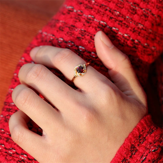 Anillo de granate "Nebulosa Rosa" de diseño original artesanal de Kemstone – Plata de ley 925 con baño de oro de 18 quilates, estilo romántico vintage KMR-MGXY172