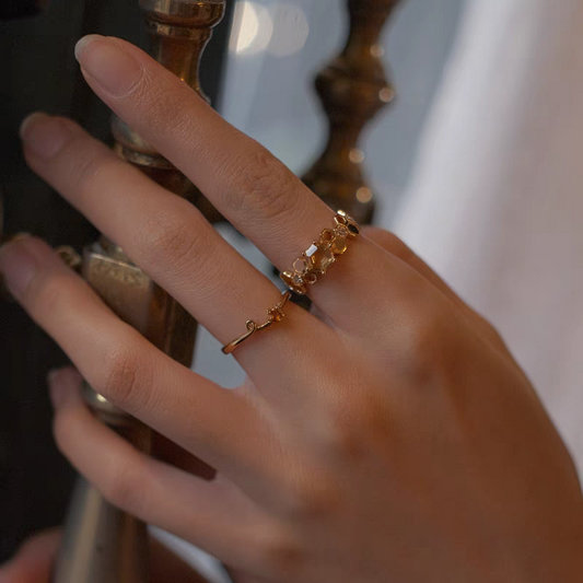 Anillo apilable de abeja con diseño original artesanal de Kemstone: anillo abierto ajustable de citrino y granate espesartita en plata de ley 925, diseño único de gema de lujo.