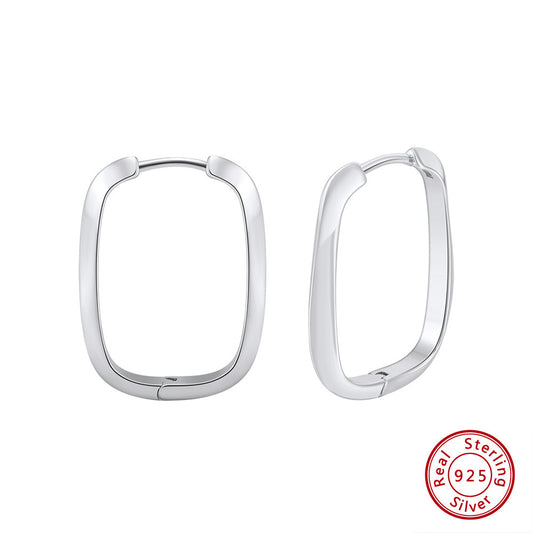 Square Hoop Earrings – 925 Sterling Silver Geometric Minimalist Handmade Jewelry for Women, Polished Lightweight Silver, 29.5x19mm A4-GAE11