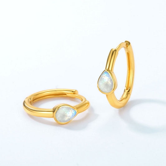 Pendientes Kemstone de piedra lunar azul, geométricos minimalistas, originales y hechos a mano. Pendientes de plata de ley S925 bañados en oro.