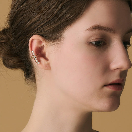 Pendientes minimalistas de concha y perla, hechos a mano por Kemstone, con diseño original - Pendientes para cartílago chapados en oro y plata S925