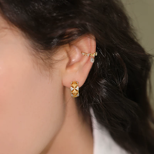 Geometric Hoop Huggie Earrings – 925 Sterling Silver Gold-Plated Micro Pave CZ, Handcrafted Dainty Lightweight Jewelry for Women A4-LZE23