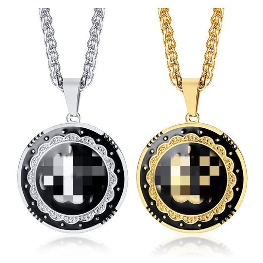 Kemstone Gold Stainless Steel Round Medallion Pendant Necklace – 30mm Enamel Hip Hop Street Style PN-1300