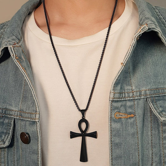 Colgante de cruz Ankh de acero inoxidable de 64 mm de Kemstone para hombre, joyería de hip hop PN-646