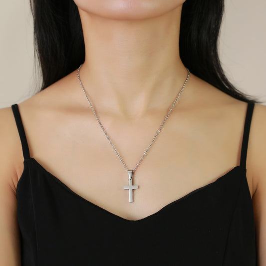 Collar con colgante de cruz de acero inoxidable Kemstone: joyería minimalista y ligera para hombres y mujeres PN-1479