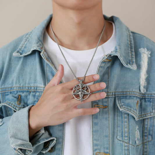 Colgante de cabeza de cabra satánica de acero inoxidable Kemstone - Collar gótico con pentagrama para hombre PN-1266