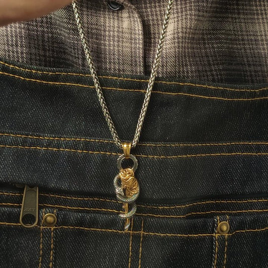 Collar con colgante de serpiente y rosa mítica de Kemstone – Acero inoxidable, estilo griego vintage NWN-09528
