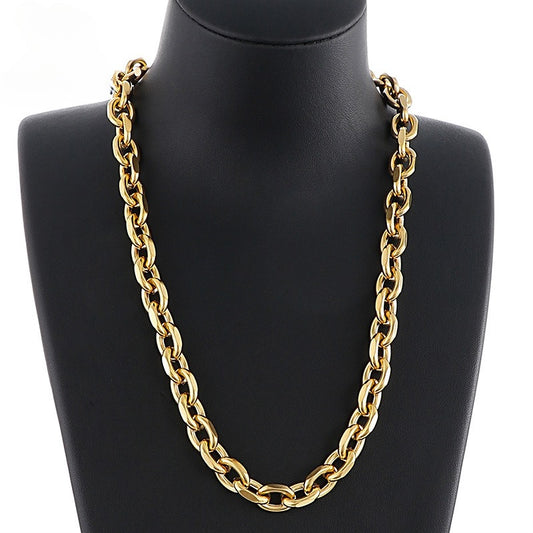 Conjunto de gargantilla y pulsera Kemstone de acero inoxidable con eslabones en forma de O y borde mate - Estética urbana rockera para estilos urbanos audaces KS138454-Z