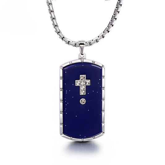 Collar con colgante de cruz de acero y titanio de inspiración militar Kemstone para hombre - Acero inoxidable resistente con detalles grabados KN90099