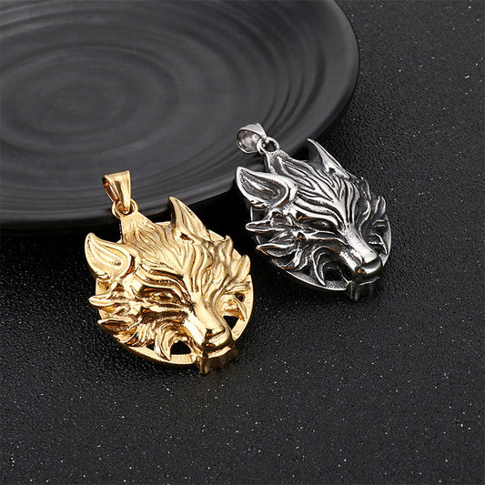 Collar con colgante de cabeza de lobo Kemstone - Diseño vikingo con bordes sin rematar en acero inoxidable mate, cadena punk resistente para uso urbano KP81873