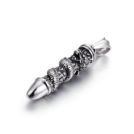 Colgante de bala forjada Kemstone con pilar de dragón: collar robusto de acero de titanio para hombre. Estilo táctico y urbano. KP55643