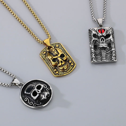Collar y llavero de acero inoxidable con calavera Kemstone para hombre: un accesorio punk vanguardista para el día a día KP47067