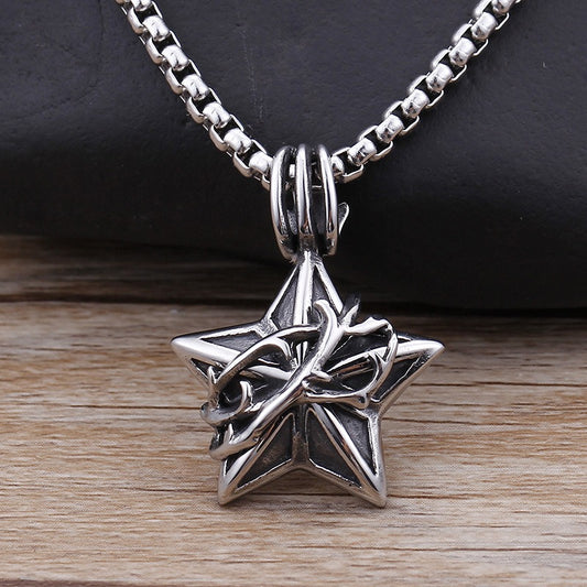 Collar con colgante de estrella de meteorito grabado en Kemstone - Acero de titanio con borde sin rematar - Joyería minimalista para hombre, ideal para exploradores urbanos KP77555-BD