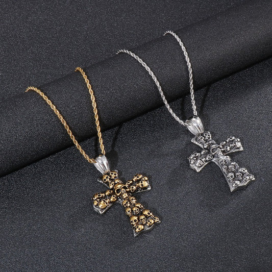 Collar con cruz de calavera punk Kemstone: un accesorio urbano atrevido para el día a día masculino. Descripción: KP55728-B