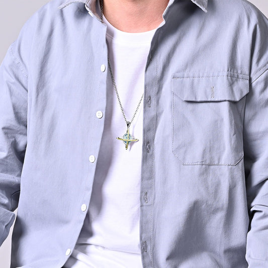 Kemstone Planet Cross Pendant Necklace for Men & Women – Stainless Steel Crystal Design 60cm Chain K-PT266