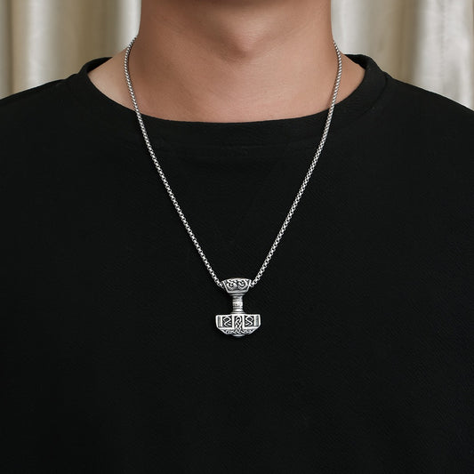 Kemstone Thor Hammer Necklace – Stainless Steel Viking Mjolnir Pendant for Men 60cm Chain K-PT498