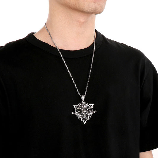Colgante de cadena Kemstone con calavera punk rock y pirata - Collar vintage de acero inoxidable con calavera de gorrión para hombre KP79431-BD