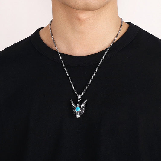 Collar con colgante de dragón Kemstone - Acero inoxidable artesanal con incrustaciones de turquesa, accesorio punk retro para hombre KP119902