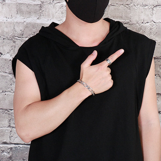 Conjunto de collar y pulsera Kemstone de acero inoxidable texturizado con doble cierre tipo O - Joyería minimalista de hip hop para hombre KB80794-Z