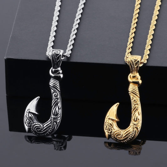 Colgante de anzuelo oceánico Kemstone - Collar de acero de titanio forjado a mano para hombre con acabado rústico KP130377