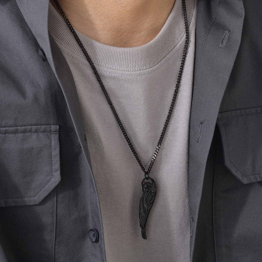 Kemstone Men’s Stainless Steel Celtic Knot Angel Wing Necklace – Vintage Pendant Gold/Black PN-1682