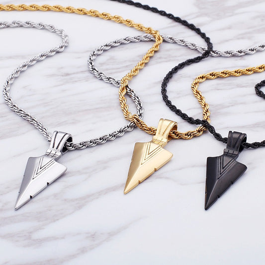 Kemstone Men’s Stainless Steel Arrowhead Necklace – Triangle Vintage Jewelry, Gold/Silver/Black KP79565-K