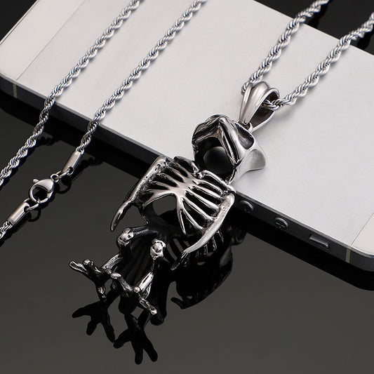 Kemstone Titanium Steel Owl Skeleton Necklace – Gothic Punk Jewelry for Men KP80011-BD