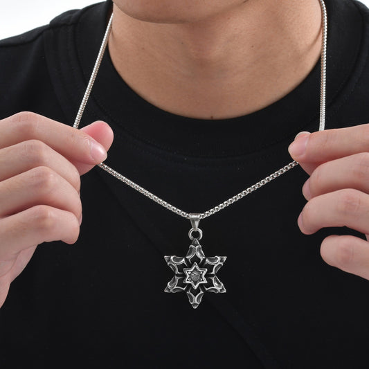 Kemstone Men’s Stainless Steel Hexagram Pendant Necklace – Gothic Biker Star Jewelry PN-2154