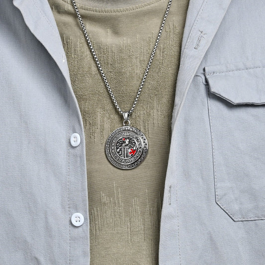 Kemstone Men’s Titanium Steel Shield Necklace – Gothic Cross Pendant K-PT657