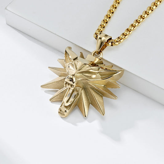 Kemstone Men’s Titanium Steel Wolf Head Pendant Necklace – Witcher Inspired K-PT552