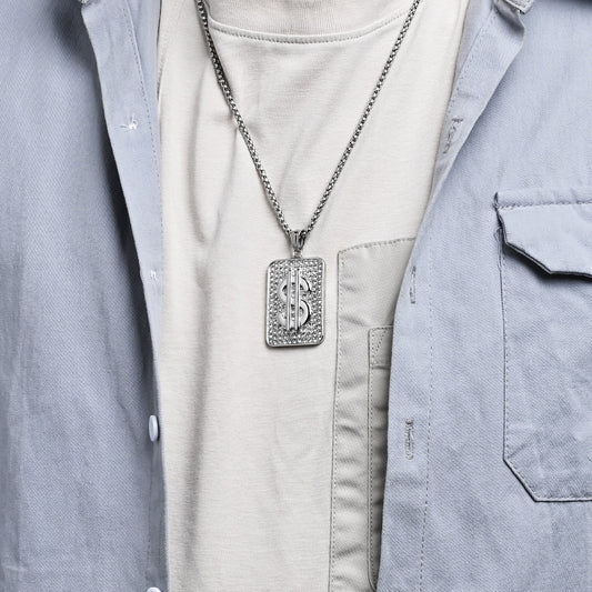 Kemstone Men’s Titanium Steel Dollar Sign Pendant Necklace – Hip Hop Iced Out Style K-PT602
