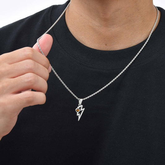 Kemstone Men’s Stainless Steel Lightning Pendant Necklace – Natural Stone Jewelry PN-2202