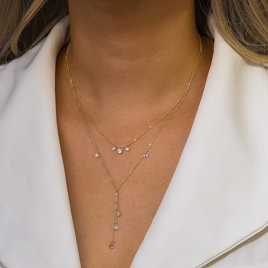 Kemstone Layered 925 Sterling Silver Necklace – Gold & Silver Adjustable Cubic Zirconia Y Pendant Jewelry for Women A4-BQN20