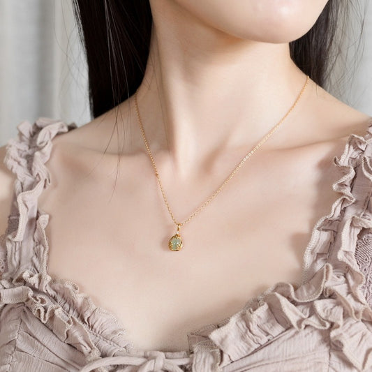 Collar con colgante de aventurina en forma de lágrima y cristal blanco, diseño original artesanal de Kemstone - Diseño de corona en plata de ley S925