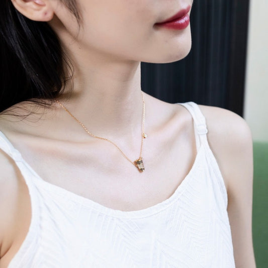 Collar artesanal Kemstone con diseño original de bebida de verano para mujer, en plata de ley S925 con circonitas de colores - 45,7 cm