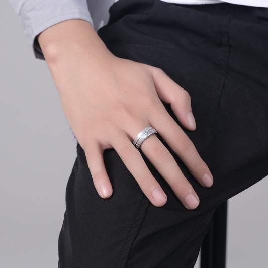 Kemstone Stainless Steel Basketball Texture Ring for Men – Matte Engraved Hip Hop Style K-R532