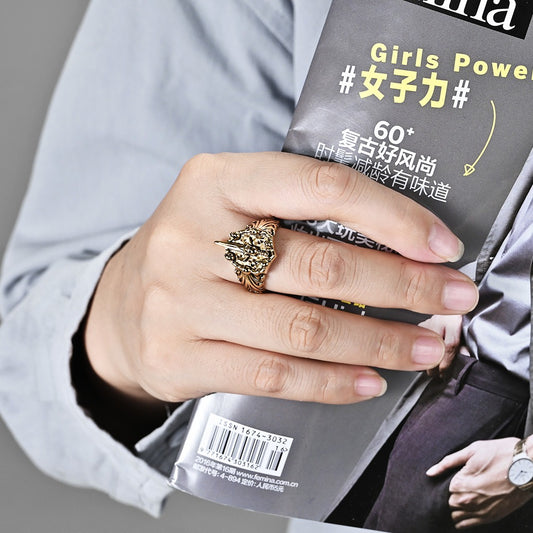 Kemstone Titanium Steel Skull Sword Ring – Gothic Vintage Band K-R830