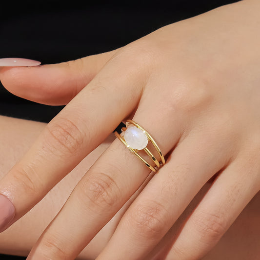 Celestial Glow – Natural Blue Moonstone Ring in Gold-Plated S925 Silver OL1966RGRM