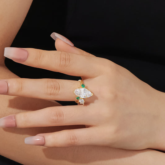 Kemstone 3-Carat Marquise Moissanite Ring – Asymmetric Design, 925 Sterling Silver Gold Plated T7-OL1143R