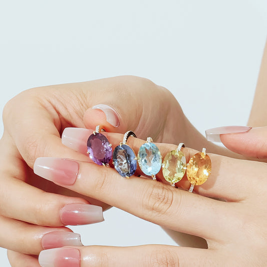Kemstone Handcrafted 6.23ct Oval Gemstone Solitaire Ring – 925 Sterling Silver Gold-Plated Statement T7-OL1058R