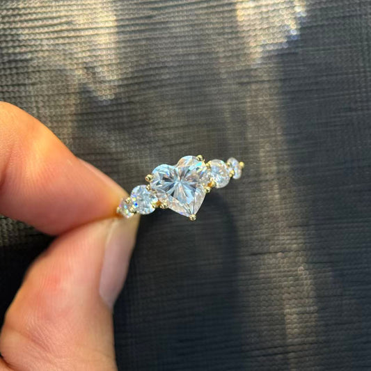 Kemstone Heart Cut Moissanite Five-Stone Ring for Women, 1–5ct S925 Gold-Plated Engagement & Wedding Jewelry SU548R